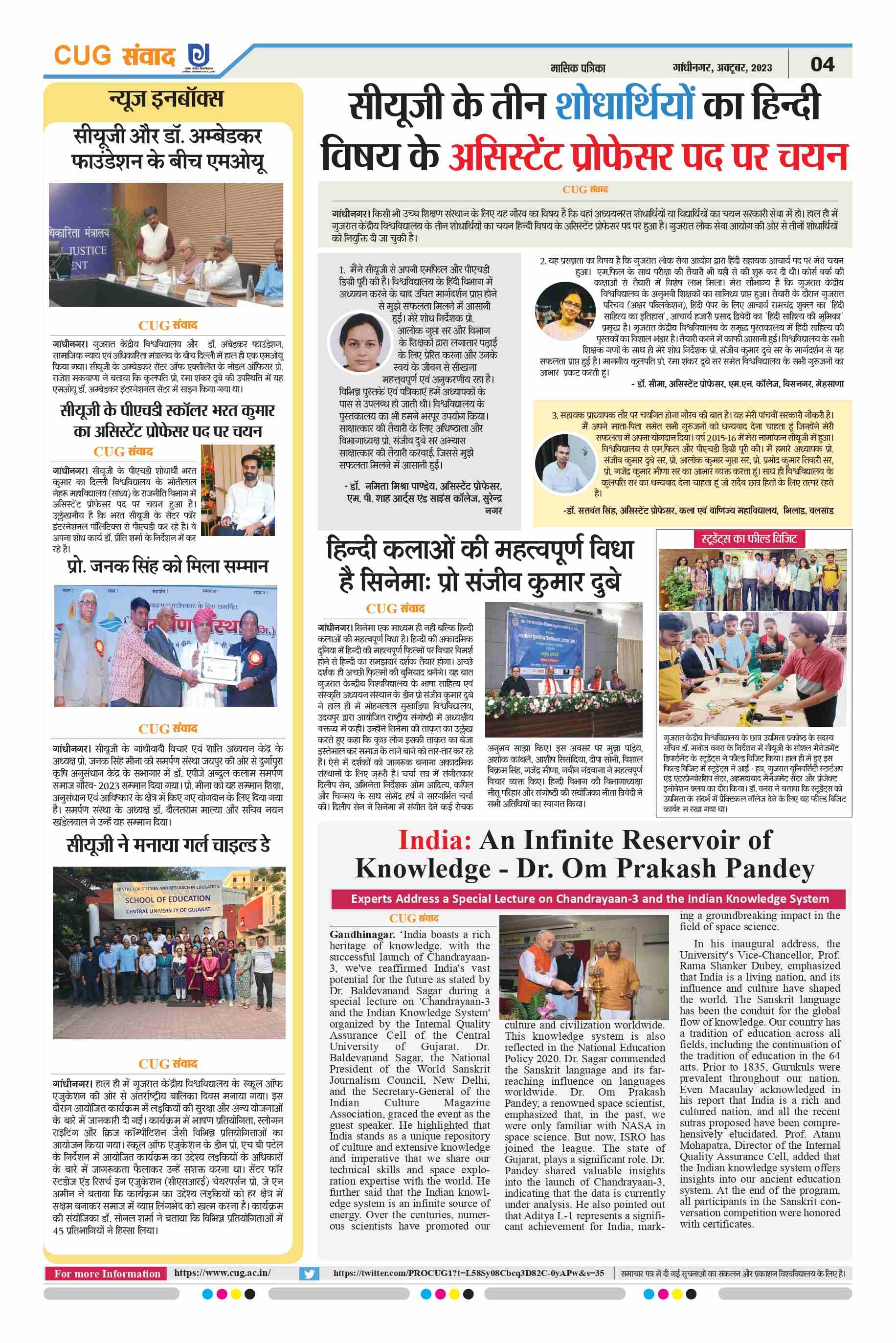 CUG ‚Samvad Masik Patrika, Gandhinagar, October 2023 Page-04. (October, 2023)