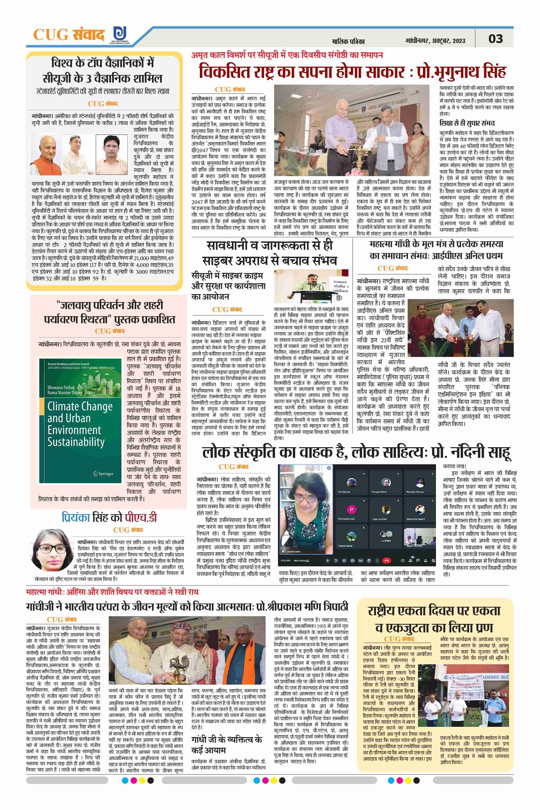 CUG Samvad Monthly Newspaper, October-2024 Page-03. (October, 2024)