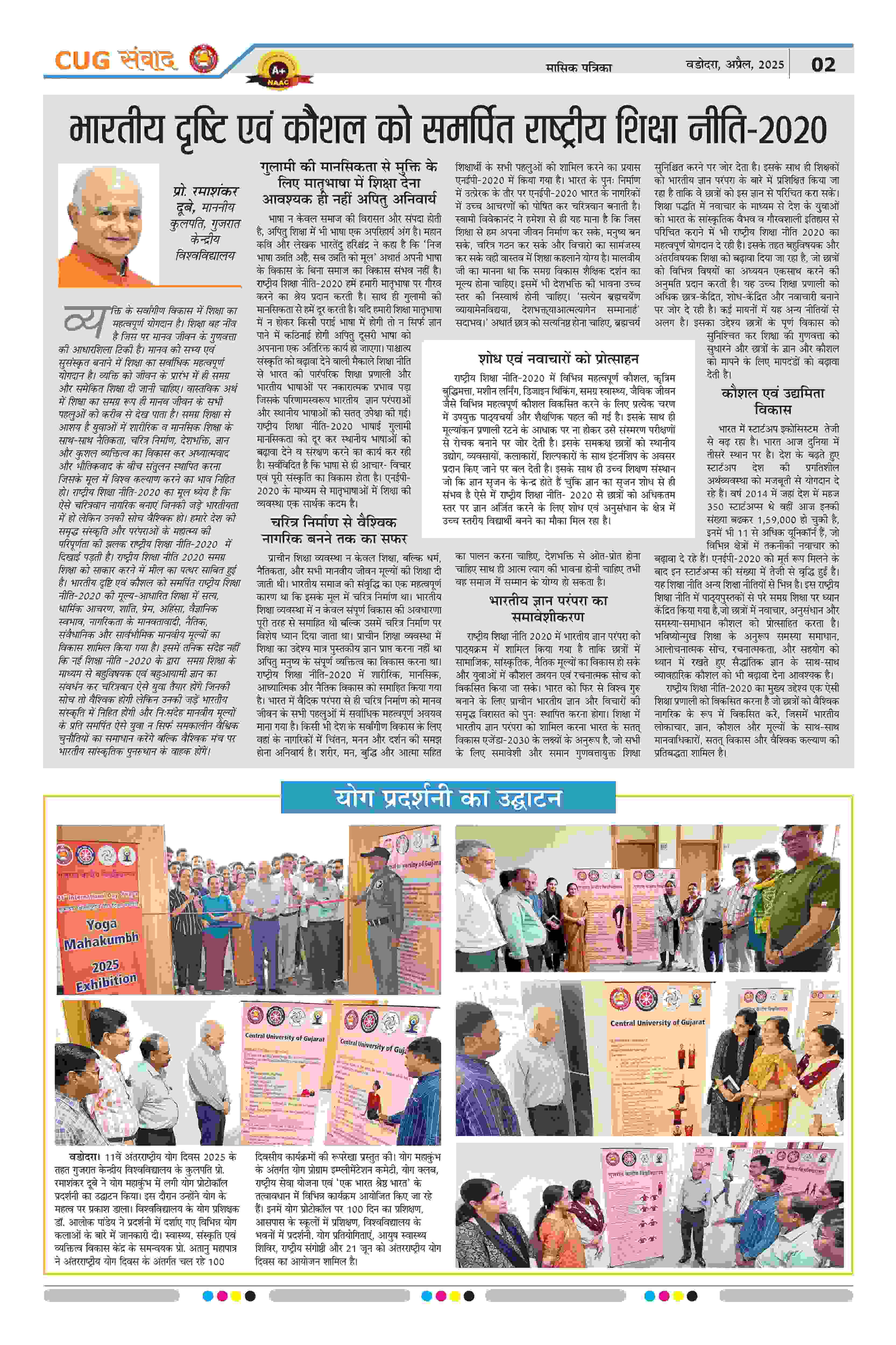 CUG Samvad Monthly Newspaper, April-2025 Page-02. (April, 2025)